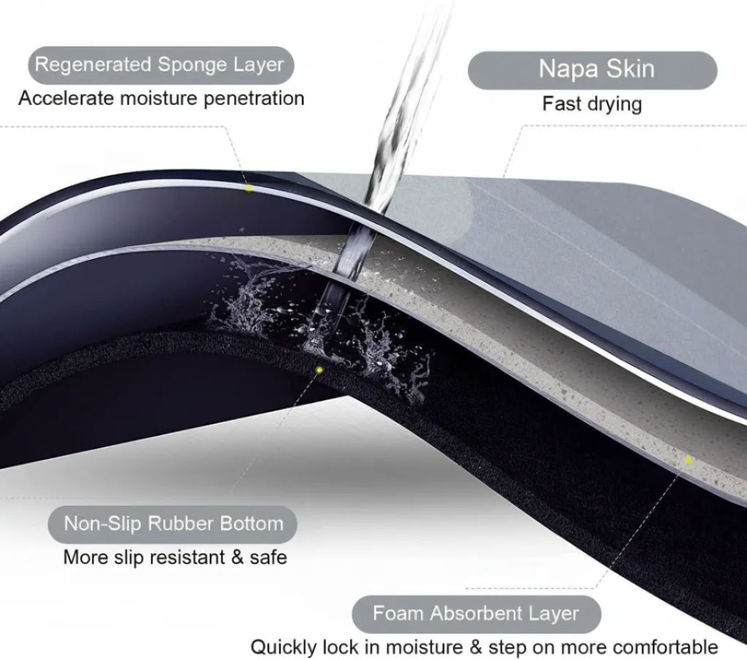 - Quick Dry Technology: Dries faster than traditional mats, prevents odor.
